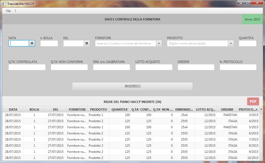 Da questa pagina è possibile scaricare e utilizzare gratuitamente un’applicazione che consente di memorizzare e stampare in PDF i dati necessari a tenere traccia della provenienza dei prodotti alimentari, secondo le direttive HACCP.